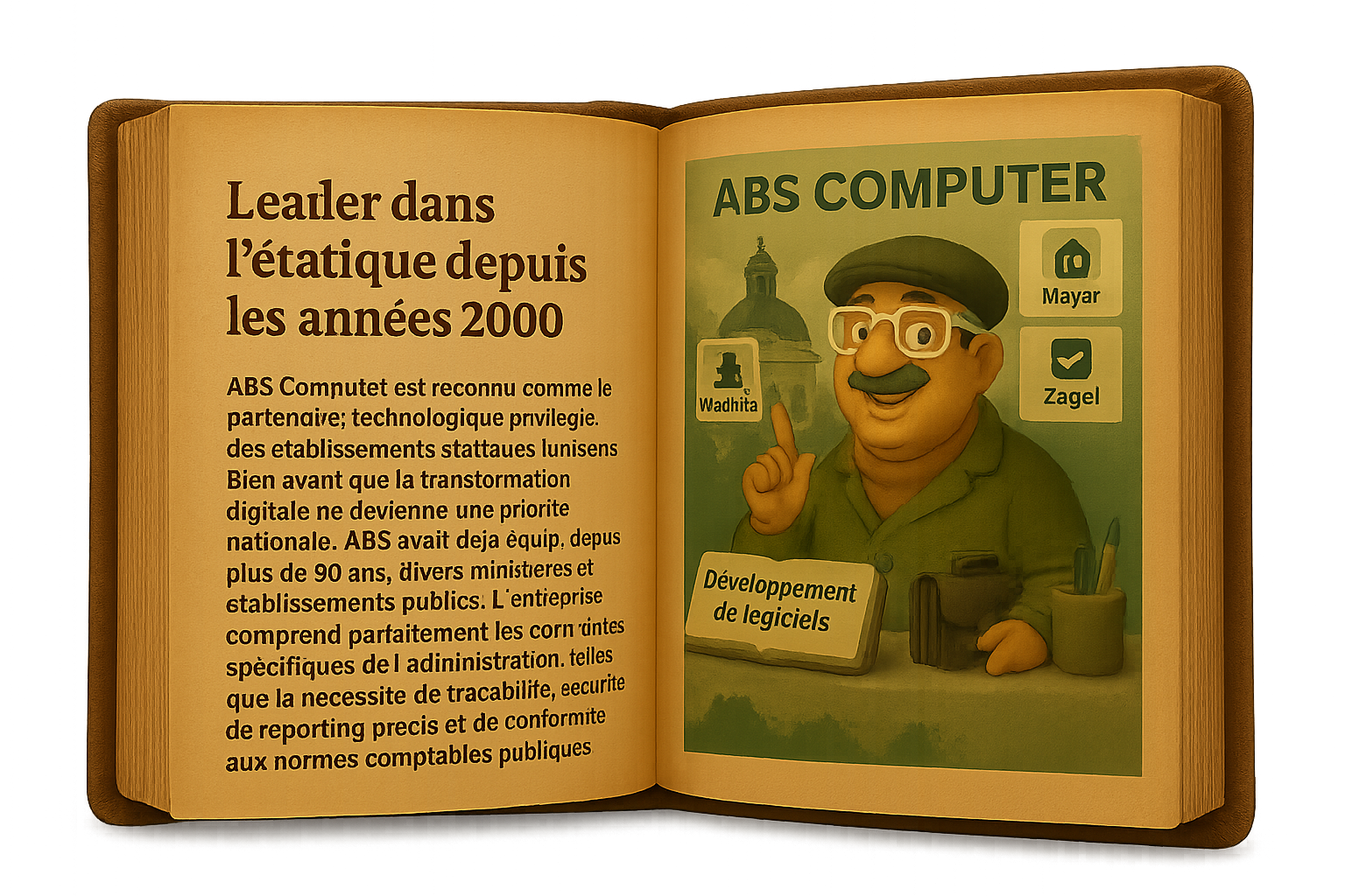 Depuis sa création, ABS Computer s'est imposée comme l’un des pionniers du logiciel de gestion en Tunisie. Grâce à une compréhension fine des rouages de l’administration et une proximité avec les décideurs, l’entreprise a su gagner la confiance du secteur public. Elle est aujourd’hui reconnue pour sa capacité à répondre aux besoins spécifiques des établissements étatiques, en proposant des solutions fiables, adaptées et innovantes. Interlocuteur direct de hauts responsables du secteur public, ABS Computer est à l’origine de plusieurs fonctionnalités et approches qui sont désormais des standards dans les ERP utilisés par les administrations tunisiennes.