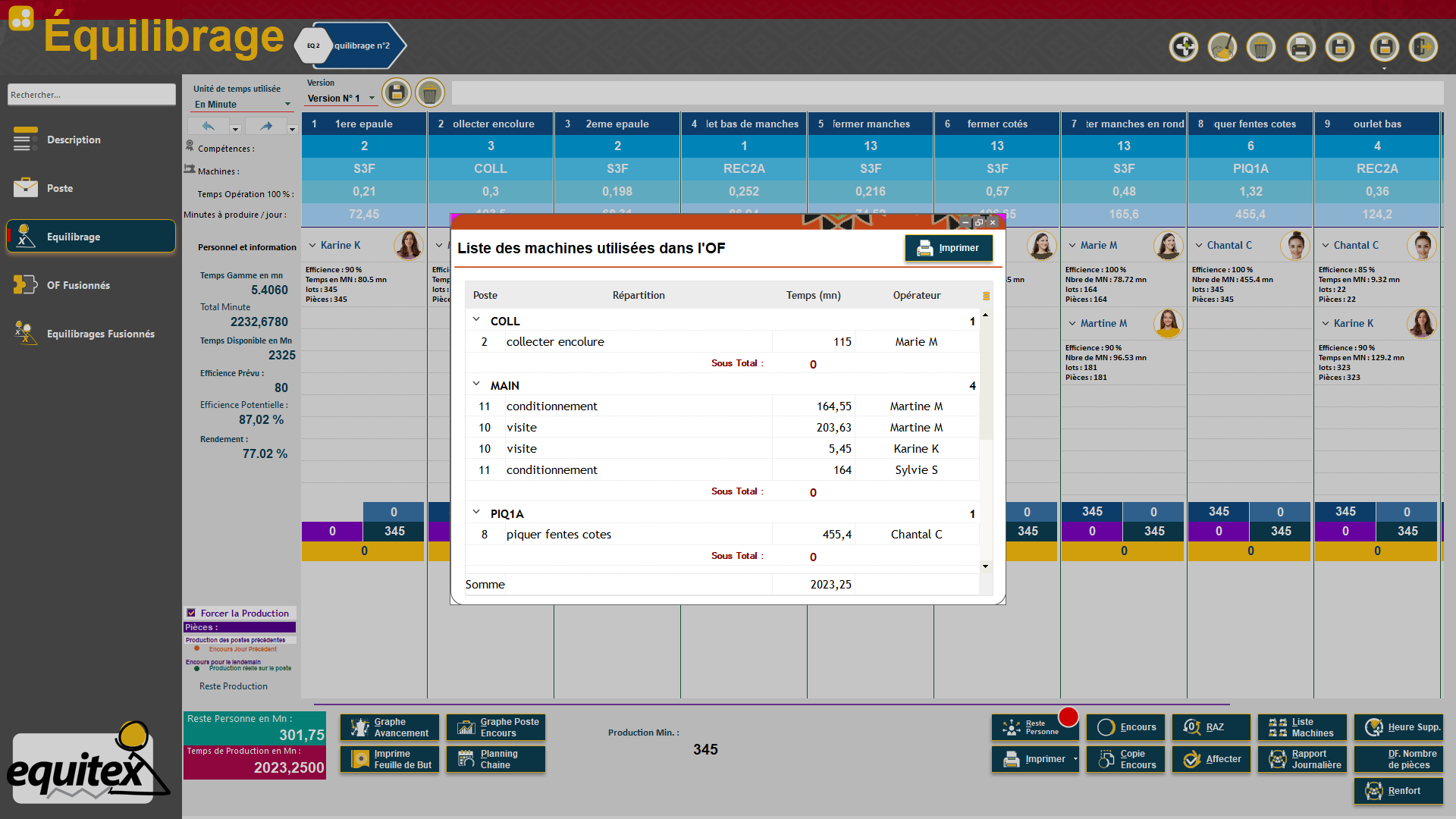 En automatisant le rééquilibrage des chaînes, Equitex élimine les longs processus manuels qui prennent généralement de 1h30 à 2h. Grâce à Equitex, la production est réajustée en moins de 30 minutes, ce qui garantit un gain de temps considérable.