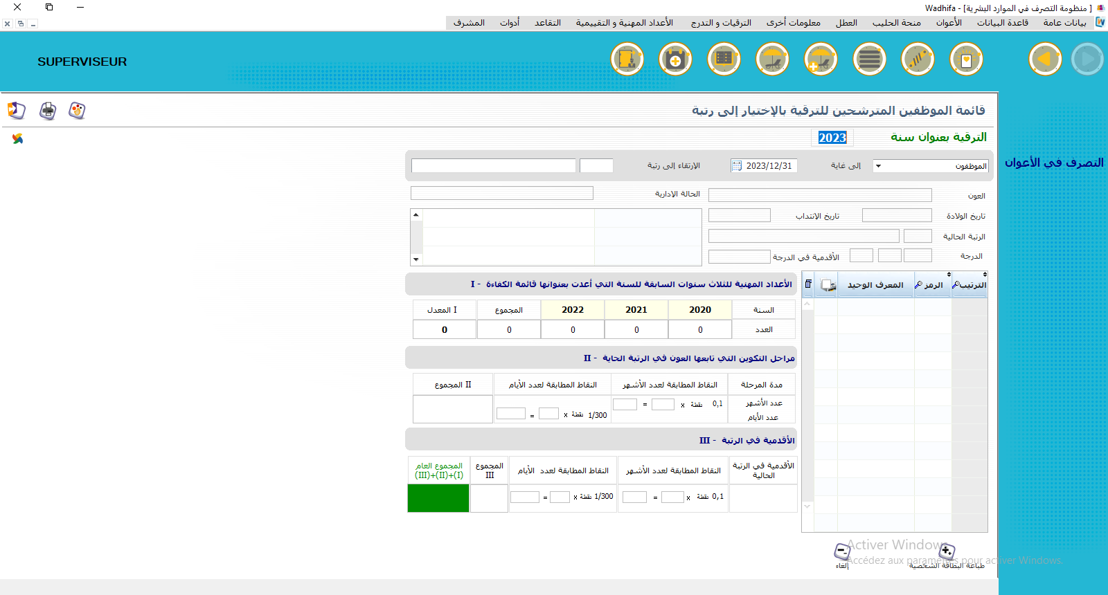 gestion des formations, promotions, notations professionnelles et suivi des mises à niveau.